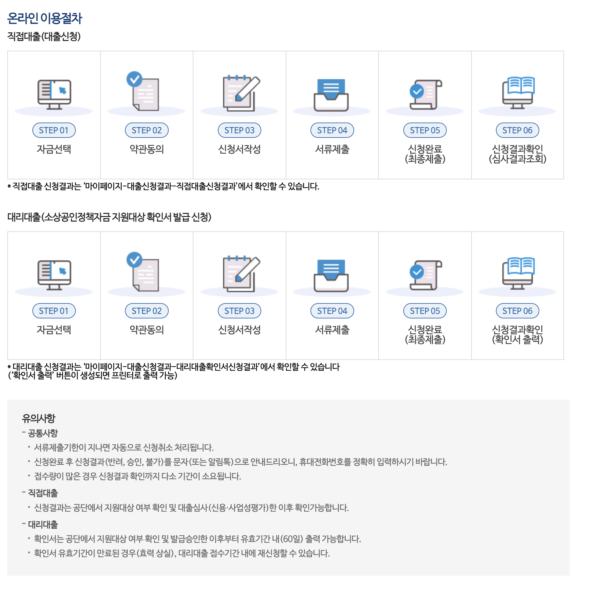 정책자금은 온라인으로 신청할 수 있어서 편리합니다. 직접대출신청과 대리대출 신청 모두 온라인으로 간편하게 진행할 수 있습니다. 회원가입은 필수인건 말 안해도 아시겠죠?