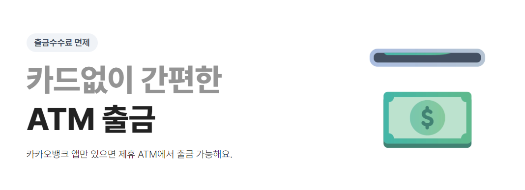 ATM에서 달러를 직접 출금하는 수수료도 무료입니다. 카드도 필요없고 카카오뱅크 앱만 있으면 제휴 ATM기에서 출금이 가능하다고 합니다.