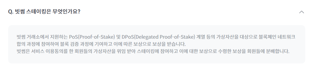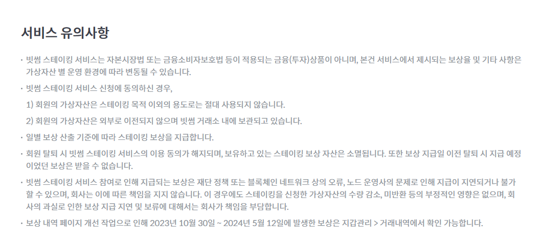 이를 보완한 것이 빗썸의 스테이킹입니다.